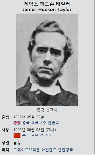 중국 내지선교의 창설자 <허드슨 테일러(James Hudson Taylor, 1832 – 1905)>가 중국에서 선교하고 있을 때입니다.