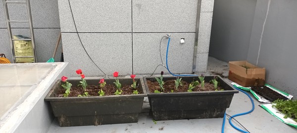3.녹색커튼의 전용화분에다 튤립 상추 완두콩등을 심었다
