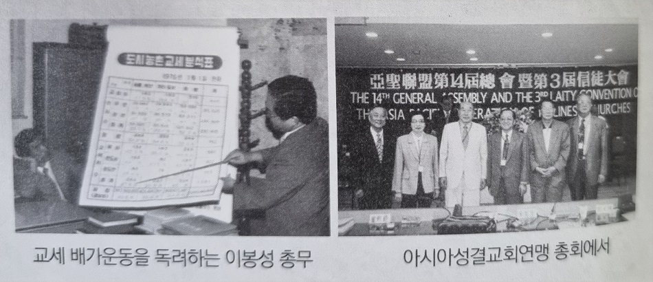 1965년 4월, 아현교회에서 열린 교단합동총회에서 서기로 선출돼 교단사역에 뛰어든 이후, 그의 업무추진력과 통합정신을 높이사서인지 8연임하였다. 곧 뒤이어 교단의 총무가 되었다. 그는 무교동 총회본부와 중앙교회와의 재산분쟁을 마무리 짓자마자, 강남이전을 추진하였다. 700여 교회*4) 에 불과한 약한 교세를 타개하기 위해 행정체계를 정비하고, 국실장들을 독려했다. 교세확장의 구체적인 밑그림을 그리며,, 교역자 노후설계를 위한 연금제도 도입, 해외선교사 파송, 십자군전도대의 기금유치 등 굵직한 일들을 추진해나갔다. 물론 이봉성목사 혼자한 일은 아니다. 총회와 전국의 교회들의 전폭적인지지, 한국의 경제성장 엔진이 맞물려 가능했다. 그가 총무를 마치던 1985년에는 1400여교회에 52만여명 신자로 250%정도 부흥되었다.