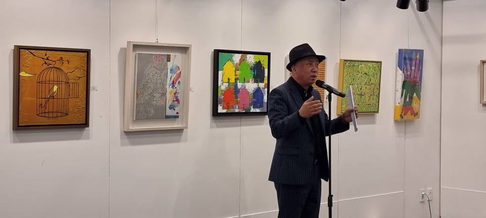 A. 제가 그동안 일본 오사카에서 한국어를 가르쳐 왔습니다. 계층도 다양하구요. 인원도 적지 않은 숫자입니다. 공무원, 변호사, 주부, 대학생, 교사 등 약 50여명에게 꾸준하게 한글과 한국어를 가르쳤더니 제가 전시를 할 때마다 그들이 곧 지역의 인사로서 축하를 해주곤 한답니다.