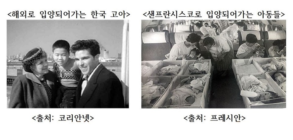 당시 전쟁고아들의 한국 내 가정으로의 입양은 심각한 경제적 빈곤과 혈연 중심의 전통적 가족관으로 인해 비현실적이었다. 그래서 그 대안이 해외로의 입양이었다. 빈곤에 처한 많은 전쟁고아 중 혼혈아동은 한국 정부와 민간 입양 주선 기관에 의해 해외입양 대상 아동의 일순위가 되어 정전 이후 1960년대 중반까지 약 8000명의 아이가 미국인의 가정에 입양되었다. 이 시기의 입양은 당시 주둔했던 미군들과 그 가족, 그리고 미국 내 민간인에 의한 인도적인 차원뿐 아니라 냉전체제 속에서 공산주의 ‘봉쇄’라는 미국의 대아시아 정책의 일환이기도 하였다.