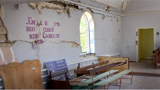 우크라이나 드루즈키프카에 있는 수콥스카 침례교회는 지난 6월 미사일 공격으로 큰 피해를 입었다.