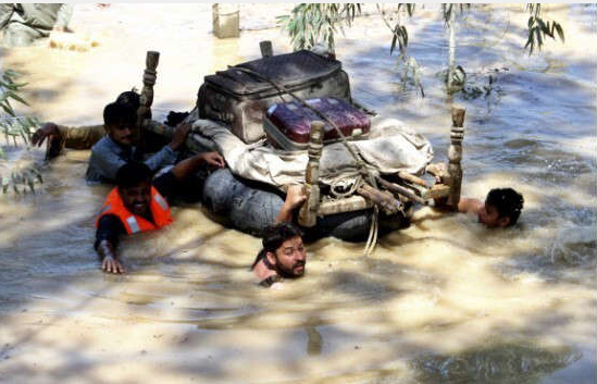 파키스탄 전역에서는 지난 6월부터 계속된 여름 계절성 폭우인 ‘몬순’으로 최소 1033명이 사망하고, 1527명이 다쳤다. 도로 3451㎞, 149개 교량, 집 94만9458채가 파괴됐다. 가축 72만 마리도 죽거나 다쳤다.