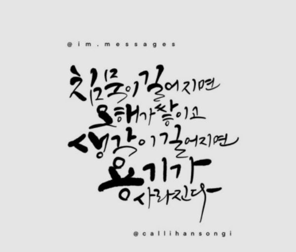 어떤 대응과 논리보다 가장 큰 힘을 발휘하는 응대는 침묵이다. 상대가 내 의견을 무시하는 처사 중 가장 화나게 하는 것도 대답하지 않거나 듣는 중 마는 둥 하는 행동이다. 그러함에도 맞장구를 치며 말이 거칠어지고 수위가 높아지는 감정이입의 많은 말보다는 침묵이 더 이롭다. 그러는가 하면 상대의 의견에 공감할 때 말없이 눈빛으로 대답하거나 잔잔한 미소를 짓는 침묵의 표현도 좋은 수단일 수 있다.