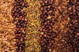 피스타치오와 아몬드 견과류는 저칼로리 간식이다. 피스타치오 너트는 항산화 성분이 높고 다른 너트보다 더 많은 루테인(1000%)을 함유하고 있다. 포도와 마찬가지로 암 방지 성분인 레스베라트롤도 포함되어 있다.
