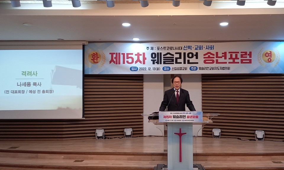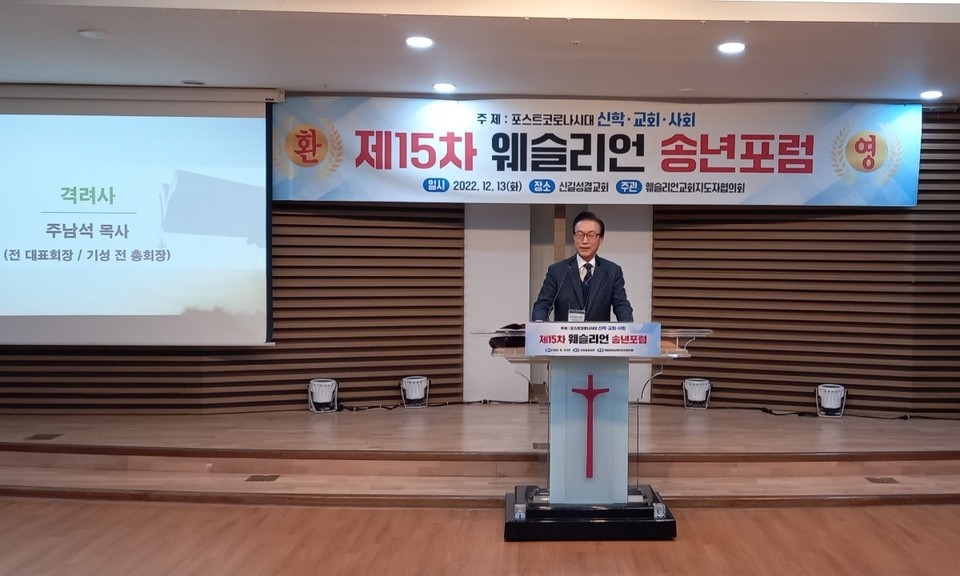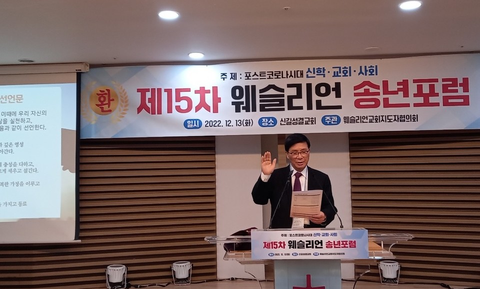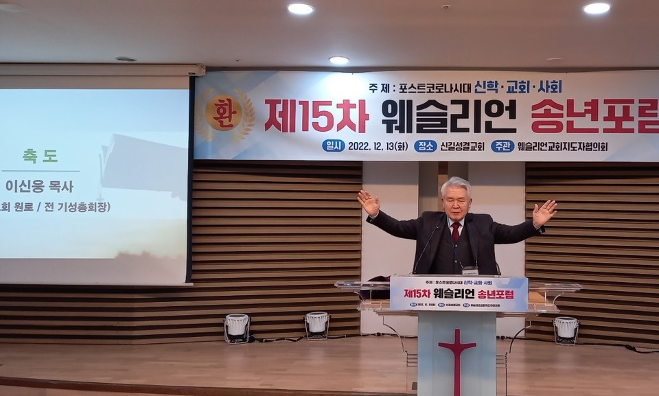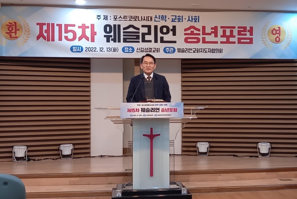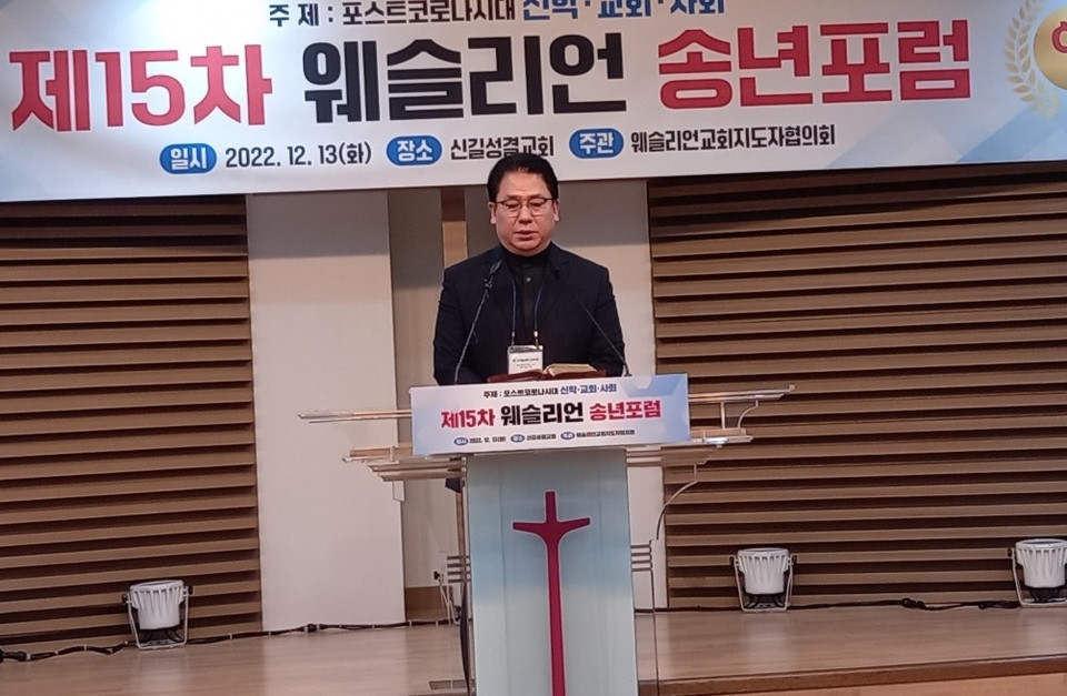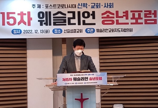 한국웨슬리언교회 지도자 협의회(사무총장 양기성 박사) 주최 제15차 웨슬리언 송년포럼이 신길성결교회(담임 이기용 목사)에서 열렸다. 12월13일(화) 오후 2시 개회예배로 시작된 송년포럼은 “포스트 코로나 시대 신학·교회·사회”라는 주제로 발제와 만찬, 회의 순으로 진행됐다.