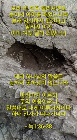 “대저 하나님의 모든 말씀은 능하지 못하심이 없느니라. 마리아가 이르되 주의 여종이오니 말씀대로 내게 이루어지이다 하매 천사가 떠나가니라”(눅1:37,38)