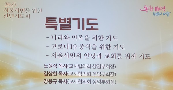 2023년 1월 20일 서울시민을 위한 신년기도회가 서울 그랜드 하얏트 호텔에서 개최됐다. 신년기도회는 매년 서울시장, 서울시청 공무원, 서울시 25개 구청장, 교시협회(서울시교회와시청협의회) 산하 25개 자치구 교구협의회에 소속된 목회자들과 시, 구 의원들이 참여한다.