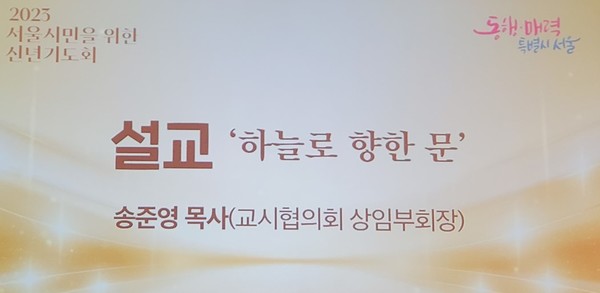오세훈 서울 시장은 참석해 축사할 예정이었으나, 이날 새벽 발생한 구룡마을 화재로 신년기도회는 참석하지 못했다. 오세훈 서울시장을 대신, 오시환 정무 부시장이 인사 말씀을 전했다. “서울시 교시협과 교구회는 서울시민을 위해 함께 협력했다. 오세훈 시장의 시정 목표는 '약자와 동행하는 서울시'이다. 2023년에도 서울시는 ‘동행 매력’ 서울시와 ‘안전특별시’ 서울을 만들기 위해 한국교회와 협력해 나가도록 하겠다. 오늘 말씀처럼 다니엘이 기도를 통해 큰 힘을 얻었던 것처럼, 참석하신 모든 분들도 깨어 기도하는 2023년이 되기를 바란다”는 메시지를 남겼다.