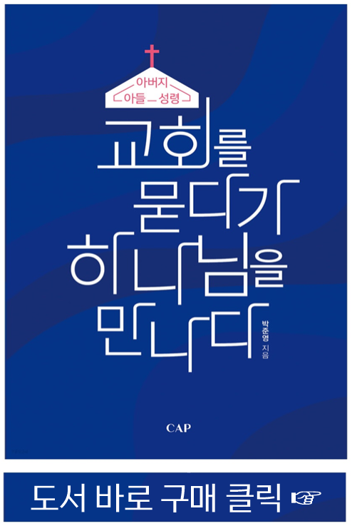 바로 이 때 박준영 목사의 『교회를 묻다가 하나님을 만나다』(출판사CAP)를 만났다. ‘과연 교회가 무엇인가?’라는 저자의 질문과 함께 출발한 교회에 대한 새로운 발견은 교회사를 넘어 태초부터 시작된 하나님의 구원사속에 이미 교회가 있었음을 깨닫게 해준다. 또한 오늘날 이교에 오염된 교회의 모습이 무엇인지, 성경의 역사를 통해 하나님께서 계속해서 세워 오신 교회 공동체는 또한 무엇인지 깨닫게 한다.