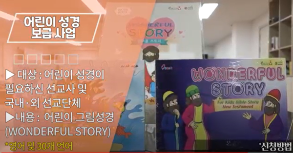 ●어린이 성경 지원 사업_원더풀 스토리 그림 성경을 전세계 어린이에게 보급하는 사역을 지속적으로 감당하고 있으며, 현재 30개 언어로 보급되었다.