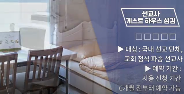 ●본월드 게스트 하우스_ 국내에 들어오시는 선교사님들께 제공되는 선교사 전용 게스트 하우스 39개 룸을 운영하고 있다. 30일 무료 사용이 가능하다.