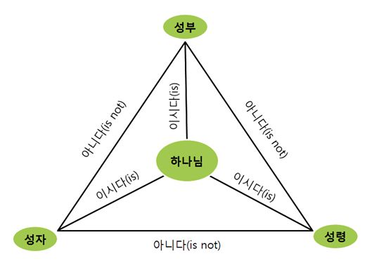 그러니까 하나님의 존재방식인 삼위일체 하나님이란 하나님이라는 본체(실체;ὁμοουσία, essence)가 하나인데, 이 본체 안에 각각 독립된 인격체인 성부, 성자(영원발생), 성령(영원출래) 삼위(位)가 존재한다는 것이다. 이 말의 의미는 삼위가 본체(실체)로부터 분리되지 않는다는 것이다. 즉 신적본체가 동일하기에 성부, 성자, 성령이 완전한 하나님이라는 것이다. 그러하기에 성부 하나님, 성자 하나님, 성령 하나님이 된다. 또 성부, 성자, 성령 삼위는 다른 위들로부터 분리되지 않고도 구별된, 그리고 다른 위에 종속되지 않은 인격체(지·정·의)이다. 그리고 삼위는 권세와 영광이 동등하다. 그러하기에 성부는 성자가 아니다, 성자는 성부가 아니다, 성자는 성령이 아니다. 성령은 성자가 아니다. 성령은 성부가 아니다. 성부는 성령이 아니라는 진술이 가능해진다,