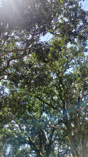 나무가 얼마나 큰지 망고나무에 올라가 망고를 따고 있는 농장의 일꾼이 작게 보입니다