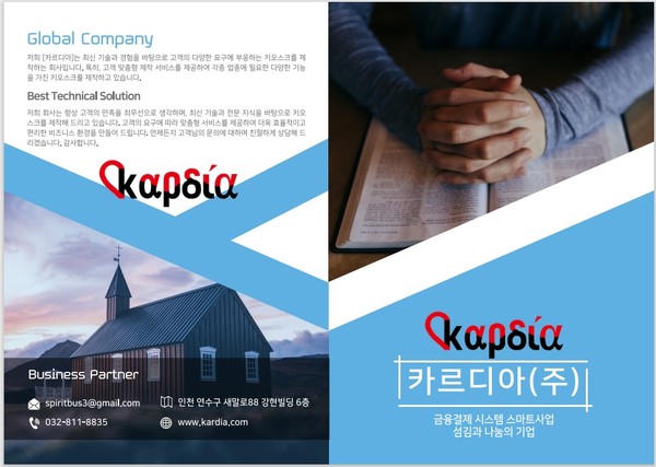 (주)카르디아 엄기형 대표는 전도사다. 또한 회사를 운영하는 일터 목회자이다. 일터 목회자로서 비즈니스 미션을 추구하고 있다. 엄 대표는 성도들이 교회에 헌금할 때 현금이나 계좌이체 등의 불편함을 해소하기 위해 키오스크 방식의 카드 결제 시스템을 개발하였다.