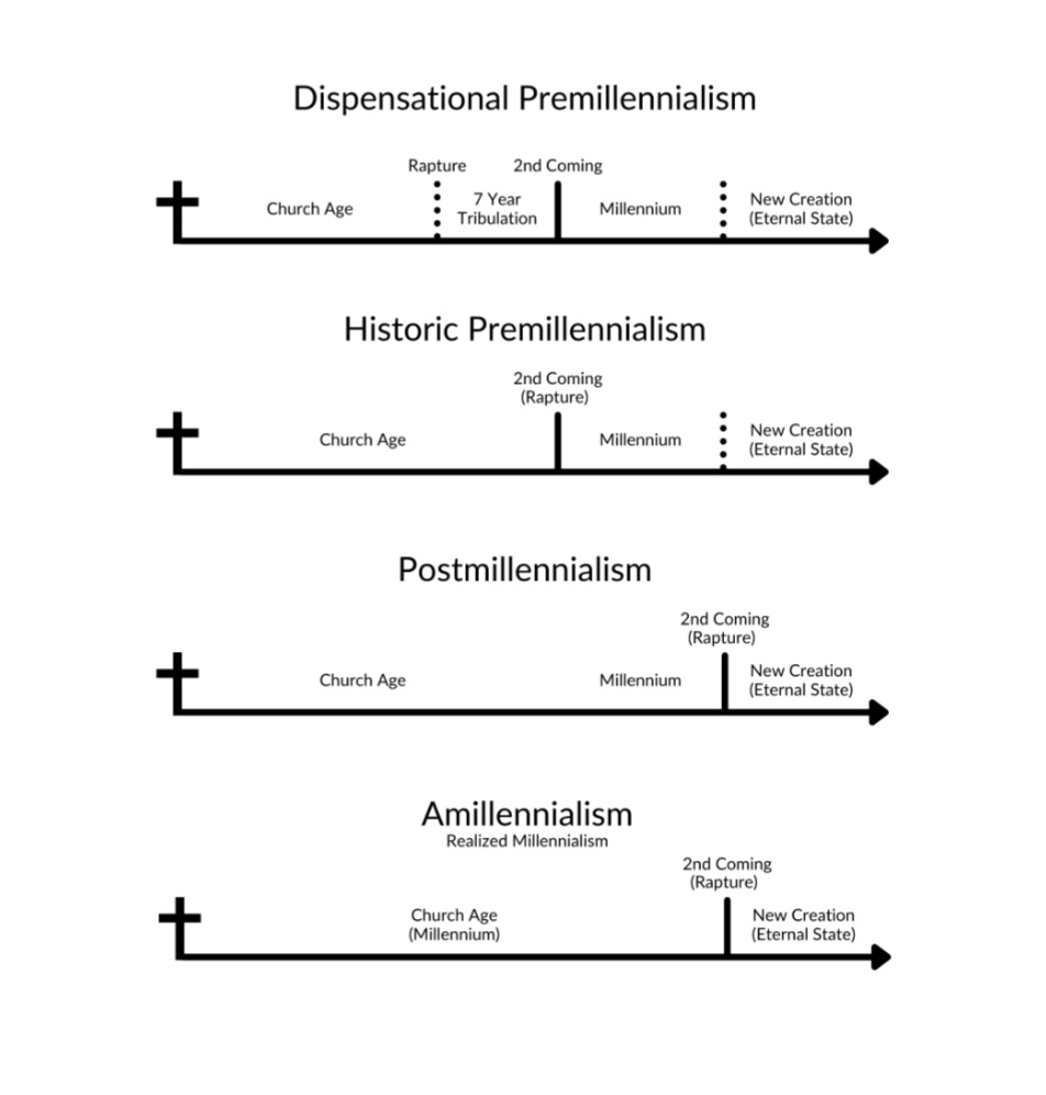 [3] 소위 말하는 ‘천년왕국’ 이전에 그리스도께서 재림하실 것을 주장하는 전천년주의(premillennialism), 천년왕국 이후에 그리스도께서 재림하실 것을 주장하는 후천년주의(postmillennialism), 그리스도의 초림부터 재림까지 전 기간을 문자가 아닌 상징으로 보는 무천년주의(amillennialism) 등으로 분류된다. 전 천년주의에서 ‘7년 대환란 전 휴거’를 주장하는 전천년주의를 ‘세대주의 전천년설’이라고 하고 ‘7년 대환란 후 휴거’의 주장을 ‘역사적 전천년설’이라고 한다. 여기서 문제가 되는 것이 바로 7년 대환란과 휴거를 문자적으로 믿고, 여러 성경을 그들의 전제에 맞추어 선택하고 퍼즐을 맞추고 해석하는 것이다.