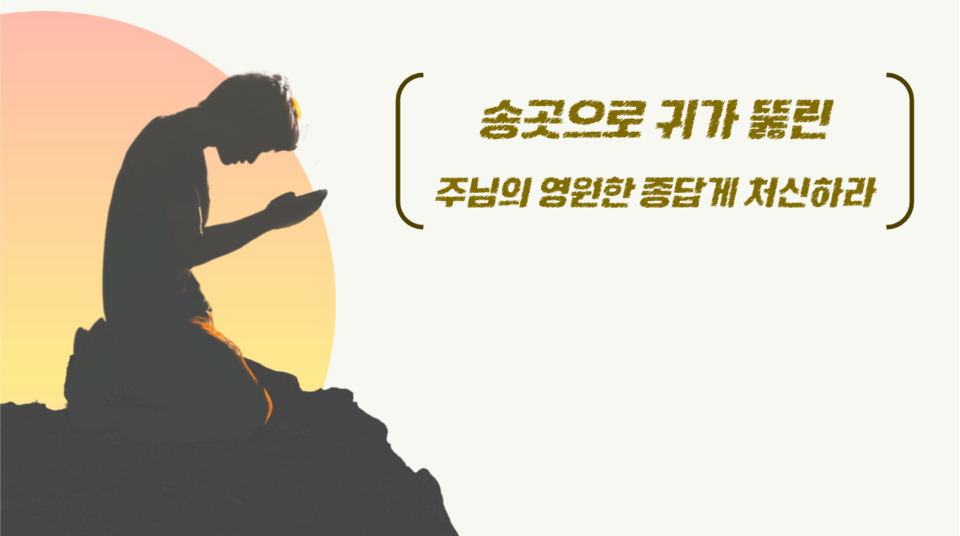 종이면 어쭙잖게 주인 행세를 흉내 내지 말고 종답게 처신하라! 송곳으로 귀가 뚫린 주님의 영원한 종, 종중의 종인 말씀 사역자라면 더욱 그러하다. 누가의 일갈을 잊지 말라! “이와 같이 너희도 명령받은 것을 다 행한 후에 이르기를 우리는 무익한 종이라 우리의 하여야 할 일을 한 것뿐이라 할지니라.”(눅 17:10) ‘명령받은 것’과 ‘하여야 할 일’은 말씀을 말씀답게 전하는 바로 그 일이다. 조금이라도 소홀할 수 없는 왕의 지엄한 명령이다.
