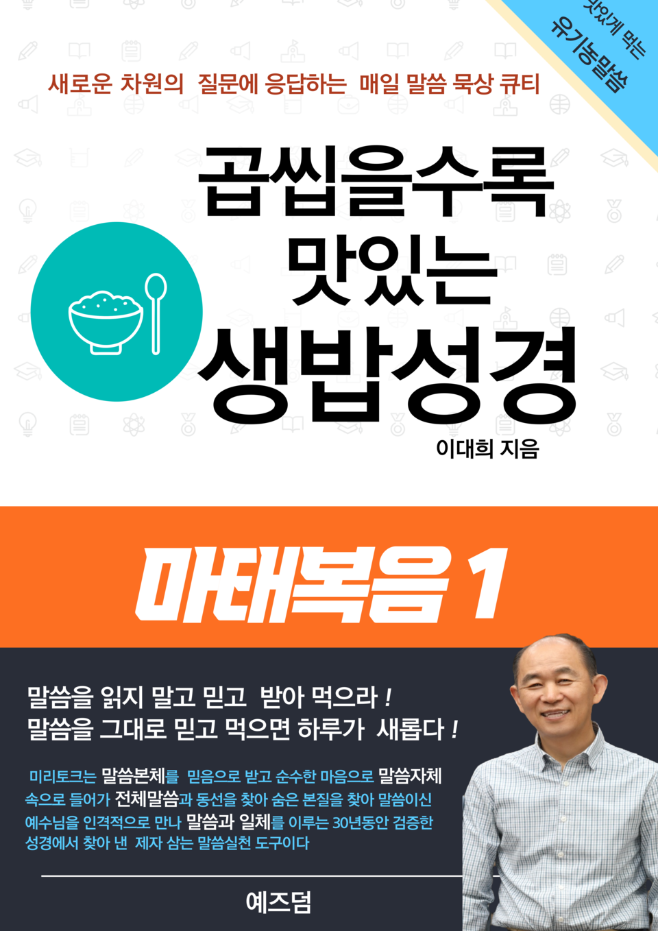 예수님은 밥을 통하여 자신이 산 떡이요 영생의 말씀인 것을 말씀하셨다. 밥은 복음을 드러내는데 아주 유익한 비유요 상징이다. 예수님은 밥을 통하여 복음의 베시지를 전하셨다. 특히 마지막 만찬에서 제자들에게 먹는 음식을 통하여 자신이 곧 피와 살이라고 말하면서 음식을 신비의 영역으로 우리를 초대한다. 교회는 모일 때 마다 식사를 나눈다. 그것은 거룩한 식사로 성도들의 한 몸 된 공동체를 이야기 한다. 밥은 예수님을 이해하는 좋은 도구다. 밥을 먹으면서 우리는 예수님을 생각하게 한다.