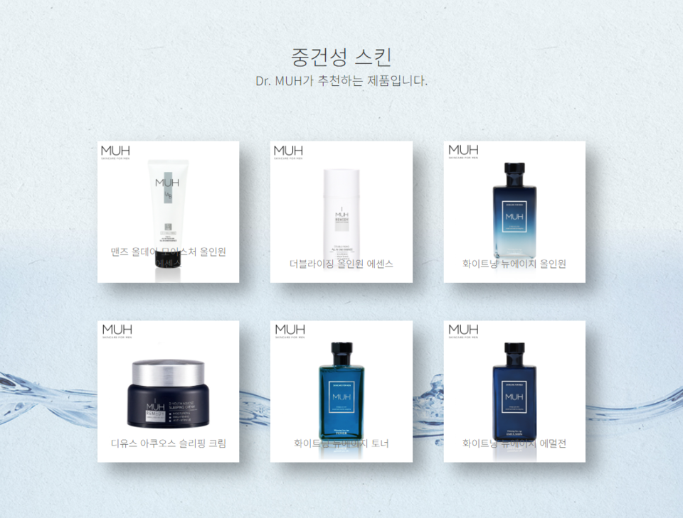 MUH(無, 무)는 ‘비움’과 ‘채움’을 컨셉으로 하는 남성화장품 브랜드이다. 론칭부터 신세계와 롯데 등 주요 백화점에 입점하며 프리미엄 화장품 시장을 공략해 왔다.
