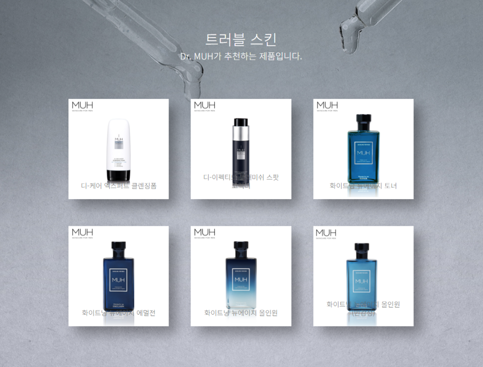 특히 MUH의 컨셉인 '비움'과 '채움'은 피부 트러블을 발생시키고 피부를 오염시키는 불순물을 깨끗하게 비워내고, 안전이 검증된 천연 기능성 성분들로 비워낸 자리를 채운다는 의미를 가지고 있다.