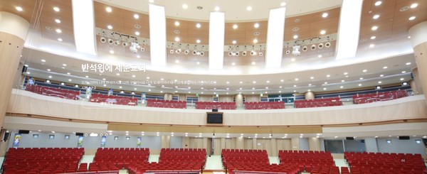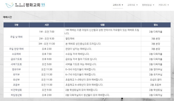 평화성결교회 본당 내부(인터넷 홈 화면에서도 볼 수 있다) 저자의 목회적 성실도가 엿보인다.