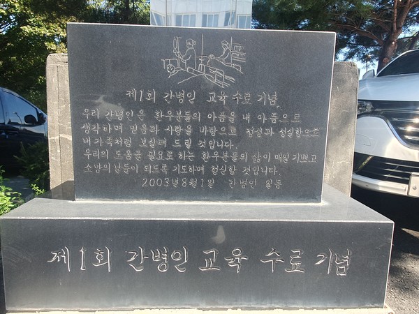 - 1회 간병인 교육수료기념비 설치(2003년 08월 01일)