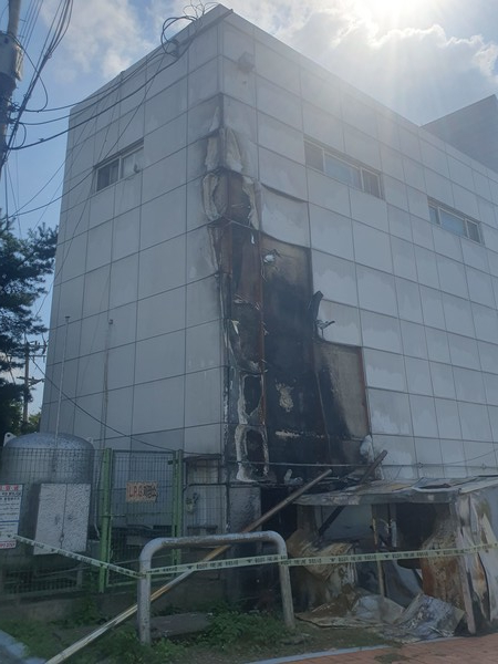 지난 6월 28일, 실화失火로 보이는 화재가 병원 일부 외벽을 태운 것이다. 바로 지척에는 대형 LPG 가스 저장용 탱크가 위치하고 있기로, “자칫 큰 비운이 발생할 수도 있었던 상황이었으나 인근 부대 초병의 발견과 신고로 인해 초기 진압이 가능했다.”고 동 병원 직원은 전하였다(송우석 행정부장).