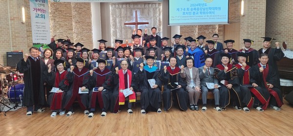 부학장 정성수박사는 “구원의 감격을 잊지 않고 가슴에 새기며 배움의 끈을 놓지 마시고 사역의 길이 쉽지 않지만 성령께서 함께 하신다. 초의 사명은 불을 밝히지만 다른 초에 불을 옮겨주는 사명도 있다. 여러분도 그렇게 되기를 바란다”고 했다.