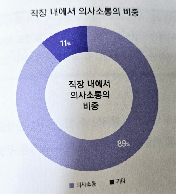 (2)아레돈도가 진행한 연구에 의하면, 직장내 대부분의 시간을 커뮤니케이션하는데 사용한다. 조직 내에서 일의 약 89%는 의사소통의 문제로 이루어져 있다고 한다.