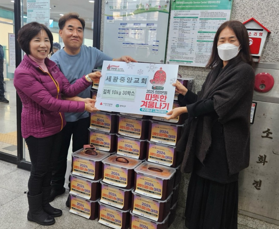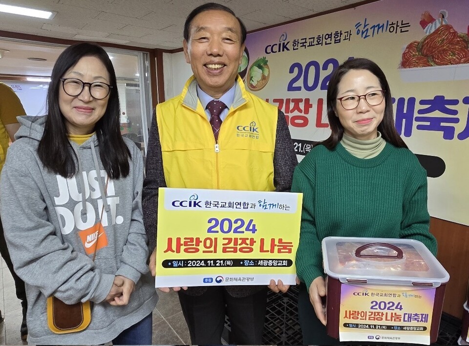한국교회연합(대표회장 송태섭 목사)은 지난 21일 서울 동작구 세광중앙교회에서 ‘2024 사랑의 김장 나눔’행사를 갖고 현장에서 정성껏 담근 김장 김치 7톤(10kg × 700통)을 사회복지시설 등 가난하고 소외된 이웃에게 골고루 전달했다.