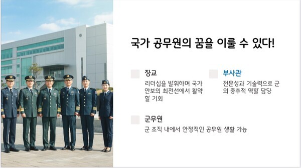 여주대학교 국방스마트장비과는 국가 안보에 기여하며 개인의 안정적인 삶을 동시에 설계할 수 있는 최적의 장소다. 군 관련 직업을 목표로 하는 청년들에게 현실적이고 안정적인 선택지를 제공하며, 학생들이 꿈을 실현할 수 있도록 돕는다.