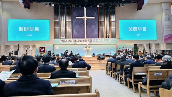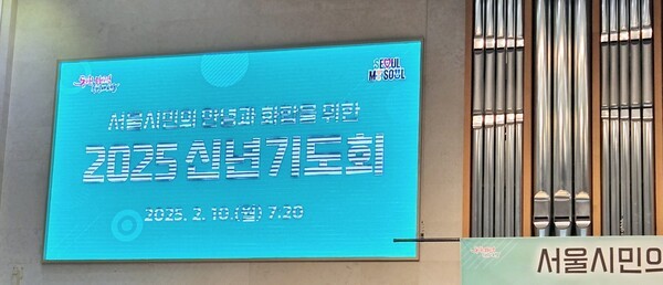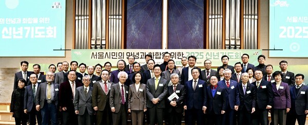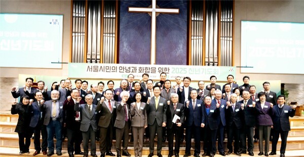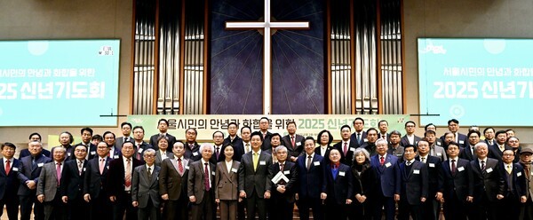 서울 시민의 안녕과 화합을 기원하는 ‘2025년 신년기도회’가 2월 12일(월) 오전 7시 20분, 신길교회 2층 대성전에서 열렸다. 이번 행사는 서울특별시교회와 시청협의회(이하, 교시협)가 주최했으며, 서울시 주요 인사와 구청장과 기독교계 지도자들이 참석해 함께 기도하는 시간을 가졌다.