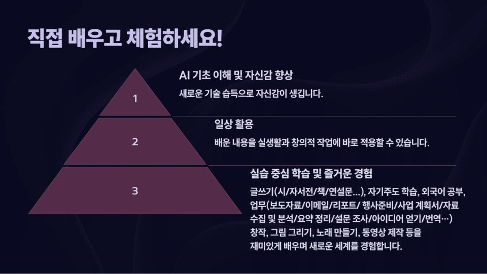 1) 기본 실용 교육 과정과 2) 업무 활용 교육 과정 두 개의 과정으로