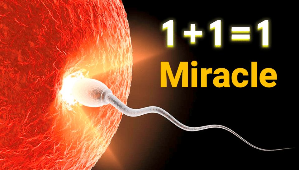 남자와 여자의 결합으로 말미암아, 남자의 몸 안에 있는 정자는 여자의 몸 안에 있는 난자를 향해 생명을 걸고 질주합니다. 그리고 하나의 세포로 이뤄진 정자는 또 하나의 세포로 이뤄진 난자 안으로 들어가, 하나의 완전히 새로운 존재, 수정란(Zygote)이 형성됩니다. 그리고 정자가 가지고 있는 23개의 염색체와 난자가 가지고 있는 23개의 염색체는 완전한 결합을 합니다. 이 두 세포가 결합하여 46개의 염색체를 가진 완전한 인간의 유전정보를 지닌 하나의 새로운 세포(수정란)로 탄생합니다. 이 과정에서 정자와 난자는 개별적인 세포로 남아 있는 것이 아니라, 서로 녹아 하나가 되어 전혀 새로운 세포로 변화합니다.