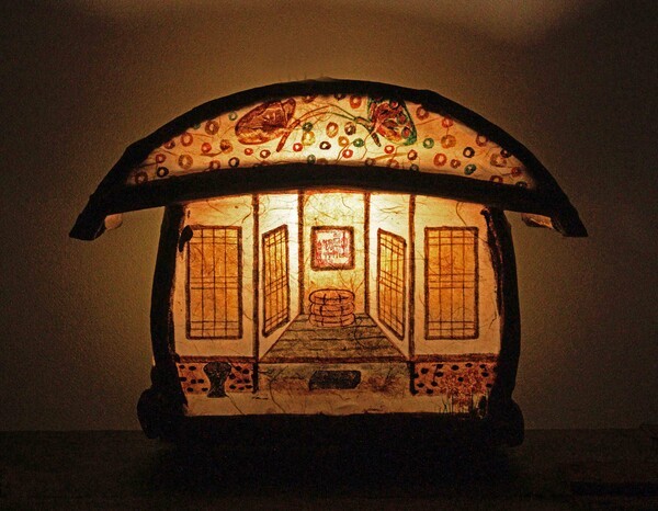 백두산 토굴에서 평생 사시다가 작고하신 백두산 융익 선생께서 직접 나무를 자르고 찌고 굽고 덖어서 만든 작품에 남우주비의 아이디어를 한지 그림으로 작품화 하였다.
