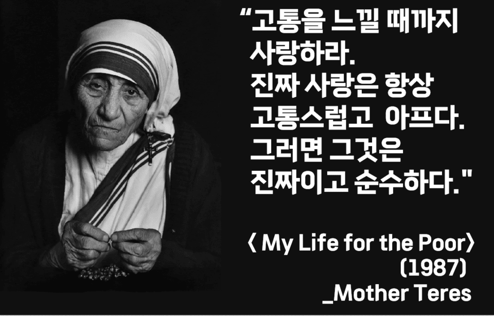 마더 테레사는 인도 콜카타에서 가난과 질병 속에 있는 이웃을 위해 헌신하며, 불의한 상황에서도 선한 선택을 실천함으로써 그리스도의 사랑을 온전히 나타내었다.