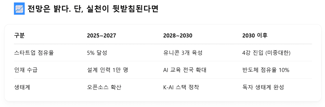 대한민국이 AI 전쟁에서 살아남고, 더 나아가 선도하려면 지금 이 전략들을 현실로 만들 실행력이 중요하다.