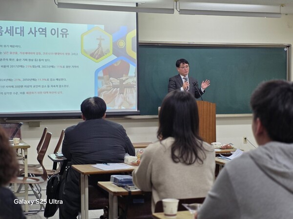 대전신학대학교 예배·설교학 김성우 교수가 “뉴-티칭으로 사역하라”는 주제로 특강을 진행했다. 김 교수는 이번 강의를 통해 다음 세대 사역의 중요성을 강조하며, 교회와 가정, 개인이 연계된 통합적인 신앙 교육의 필요성을 역설했다.