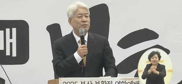 말씀을 전한 김문훈 목사(부산교회희망연합 총재)는 ‘십자가 부활’이라는 제목으로 설교했다.