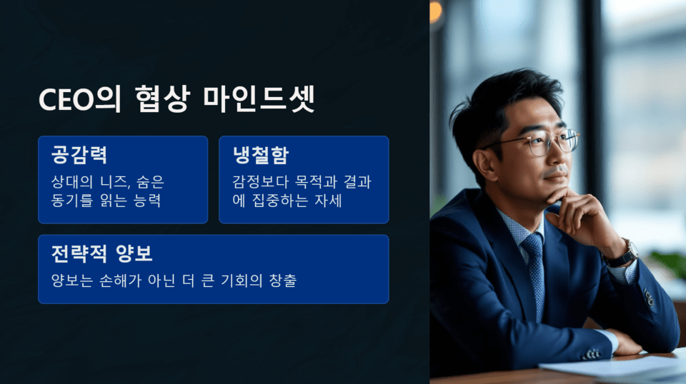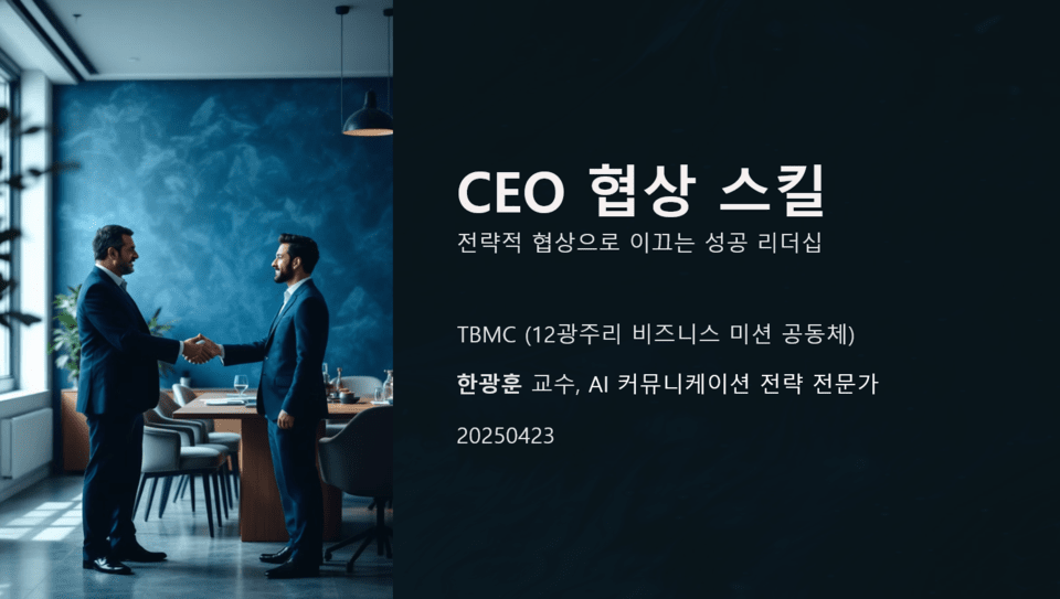이어 한광훈 이사장은 “CEO의 협상 마인드셋이 필요하다. 이를 위해 CEO는 상대의 니즈와 숨은 동기를 읽는 공감력, 감정보다 목적과 결과에 집중하는 냉철함, 작은 손실이 있어도 더 큰 기회를 창출하는 전략적 양보가 준비돼야 한다”라고 말했다.