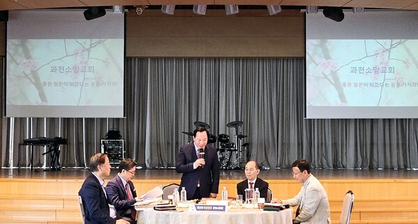 과천소망교회는 도시자연친화적환경이다. 교회에 들어서는 순간 여유와 쉼과 평안과 행복을 선물하는 그런 분위기다. 에덴동산 같다는 느낌을 받았다. 무엇보다 3시간 정도 진행되는 토론식말씀사경회 동안 한번도 쉬는 시간없이 진행되었지만 자리를 떠나지 않고 집중해서 함께 한다는 것이 특이했다. 앞에서 끌어가는 4명의 섬김이들의 진지함과 성경에 대한 깊은 이해와 배움의 자세, 함께 그 자리를 채우고 있는 성도들 모두 말씀이란 재료 앞에서 하나된 모습이 아름답다고 느꼈다.