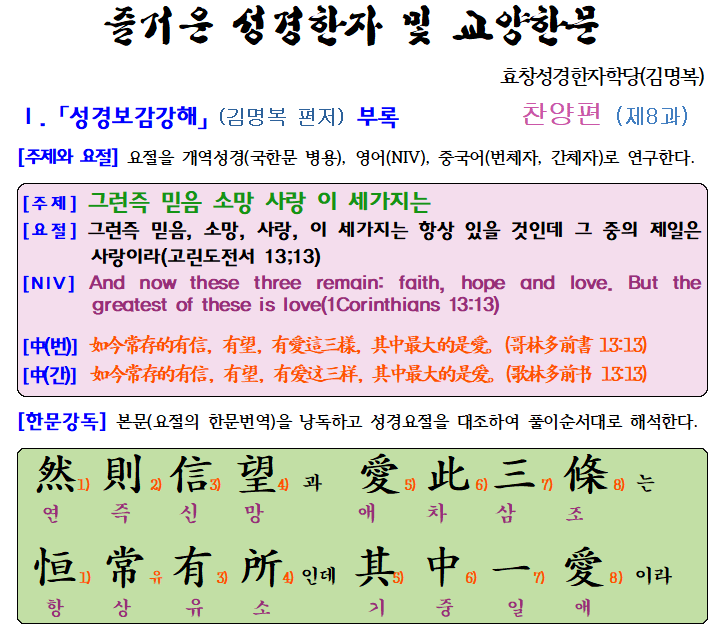 [요절] 고린도전서 13:13 “그런즉 믿음, 소망, 사랑, 이 세 가지는 항상 있을것인데 그 중의 제일은 사랑이라”