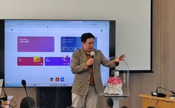 "AI 인공지능 감성로봇 LiKU"의 강사로 오신 김선호 과장은 "AI 감성로봇 ‘리쿠’는 어르신 돌봄 서비스, 아동 돌봄 서비스, AI 디지털 교육"이라는 세 가지 주요 비즈니스를 통해 사회 각계각층의 돌봄과 학습을 지원하고 있다고 전했다. 또한 감성 로봇 리쿠를 통한 다양한 학습과 활용방안을 소개했다.