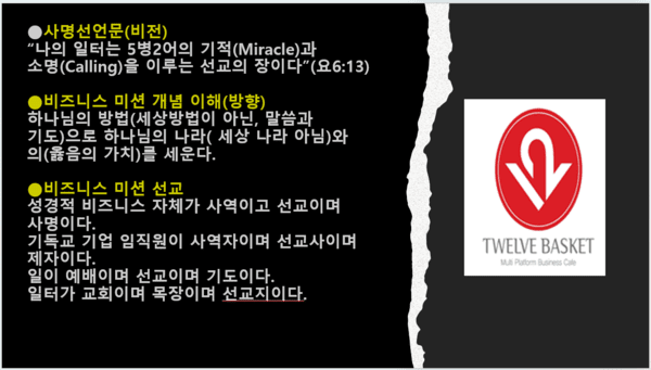 ●비전 선언: 비즈니스 세계에 하나님의 나라 임하게