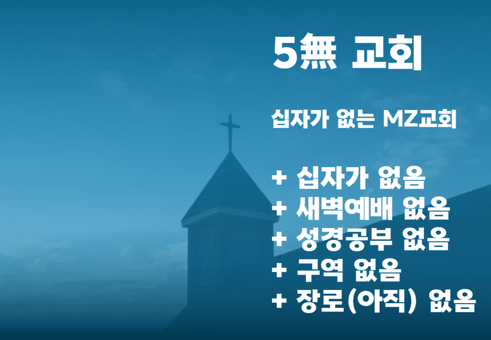 * '장로 없음'에 대한 우회적 비판: '5無' 중 하나로 '장로 없음'을 언급하고 '아직'이라는 단서를 붙인 것은, 장로층이 교회의 변화를 가로막는 보수적인 집단이라는 저자의 인식을 드러낸다. 이는 기존 교회의 리더십 구조가 시대적 변화에 둔감하다는 비판적 시각을 내포한다.