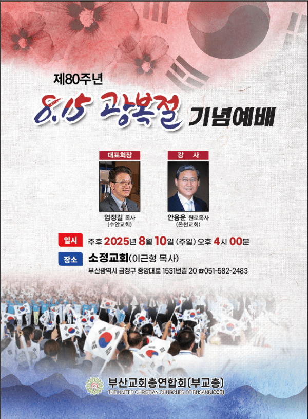 광복 80주년을 앞둔 올해, 35년간 빼앗겼던 주권을 되찾은 8·15의 역사적 의미를 되새기고, 하나님이 주신 해방의 은혜와 복음적 통일의 비전을 함께 나누는 기념예배가 열렸다.