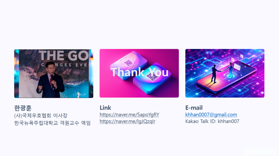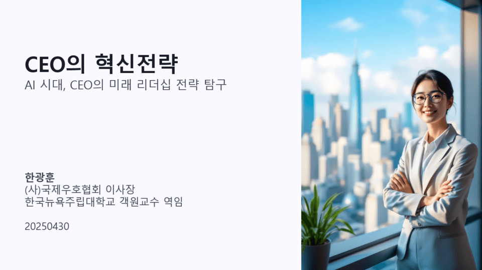 이전 기사보기 다음 기사보기 한광훈 교수의 CEO 특강 스크롤 이동 상태바 현재위치 CEO 특강 한광훈 교수의 CEO 특강 입력 2025.08.12 14:54 글자 크기 본문 글씨 키우기 본문 글씨 줄이기 프린트 인쇄하기 SNS 기사보내기 기사저장 다른 공유 찾기 이 기사를 공유합니다 닫기 AI 시대, CEO의 미래 리더십 전략 탐구 국제우호협회 이사장, 한국뉴욕주립대학교 객원교수 역임, TBMC이사장 저작권자 © 본헤럴드 무단전재 및 재배포 금지 관련기사 한광훈 교수의 CEO 특강 한광훈 교수의 CEO 특강 한광훈 교수의 CEO 특강 한광훈 교수의 CEO 특강 한광훈 교수의 CEO 특강 [기도문] 한광훈 이사장, 제61회 TBMC 수요기업선교포럼 대표기도 [TBMC] 한광훈 이사장, “사회적 책임과 선교적 영향을 고려한 성공이 진정한 성공” 한광훈 논설위원 khhan0007@gmail.com 다른기사 보기 개의 댓글 회원로그인 작성자 비밀번호 댓글 내용입력 댓글 정렬 최신순 추천순 답글순 BEST댓글 BEST 댓글 답글과 추천수를 합산하여 자동으로 노출됩니다. 닫기 더보기 댓글삭제 삭제한 댓글은 다시 복구할 수 없습니다. 그래도 삭제하시겠습니까? 비밀번호 댓글수정 댓글 수정은 작성 후 1분내에만 가능합니다. 본문 / 400 비밀번호 내 댓글 모음 닫기