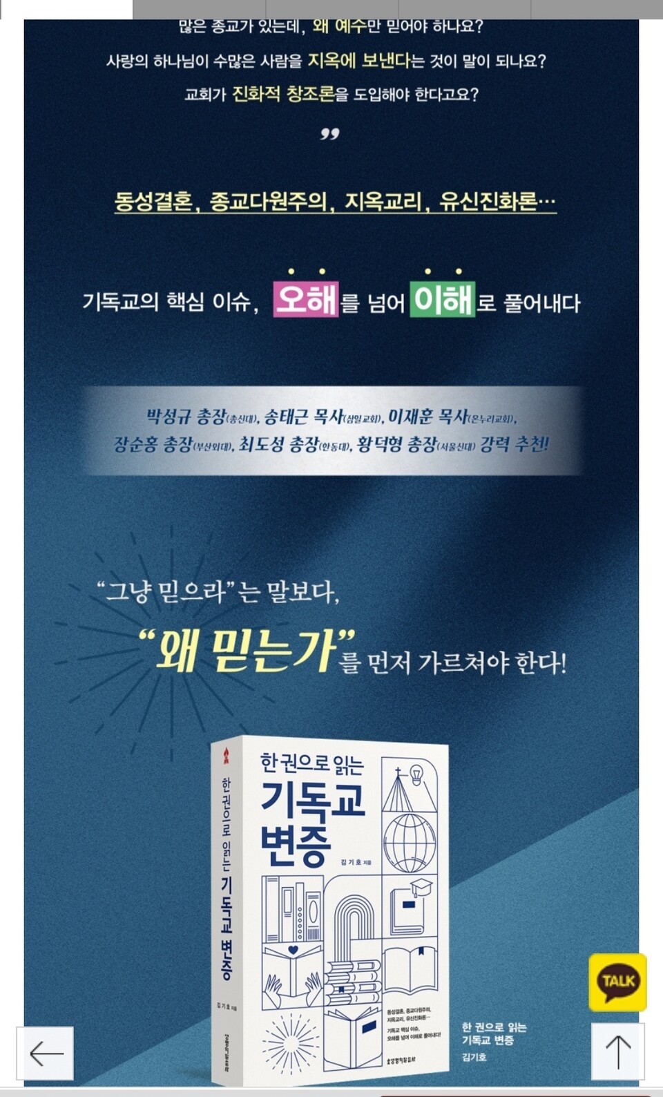 ◎출판사 서평 “동성결혼, 종교다원주의, 지옥교리, 유신진화론….” 기독교 신앙을 흔드는 핵심 이슈, 오해를 넘어 이해로 명쾌하게 풀어내다! “복음주의 그리스도인은 동성애와 동성결혼을 왜 반대하는 거죠?” “많은 종교가 있는데, 왜 예수만 믿어야 하나요?” “사랑의 하나님이 수많은 사람을 지옥에 보낸다는 것이 말이 되나요?” “교회가 진화적 창조론을 도입해야 한다고요?” 기독교를 향한 질문은 더 날카로워졌고, 다음 세대는 더 멀어지고 있다. 이제는 단순한 권면이 아니라, 믿음의 분명한 근거가 요구된다. 따라서 바로 지금, 교회의 회복과 성장을 위해 변증이 필요하다. 혼란의 시대, 신앙의 질문에 답하는 변증의 여정
