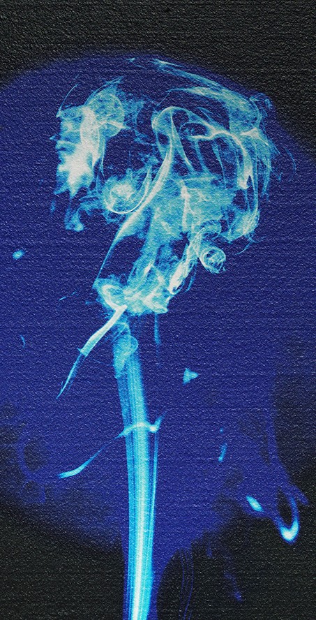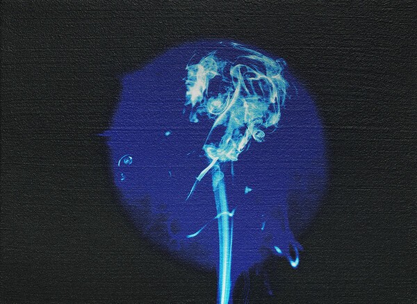 우주에 신비로움을 찾아 푸른색 연기를 피운 작품 이예요