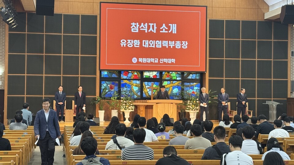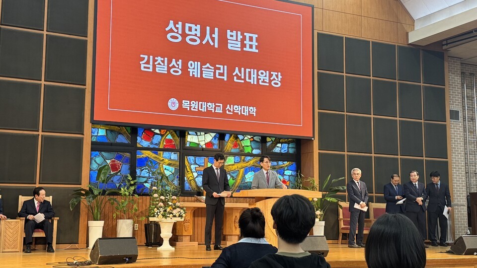 지난 9월 25일(목) 오전 12시, 목원대학교 신학대학 채플 예배 후, 동문과 학생들 200여명이 함께 모여 교단의 통합신학대학원 설치 시도에 대한 반대 성명서를 발표했다.
